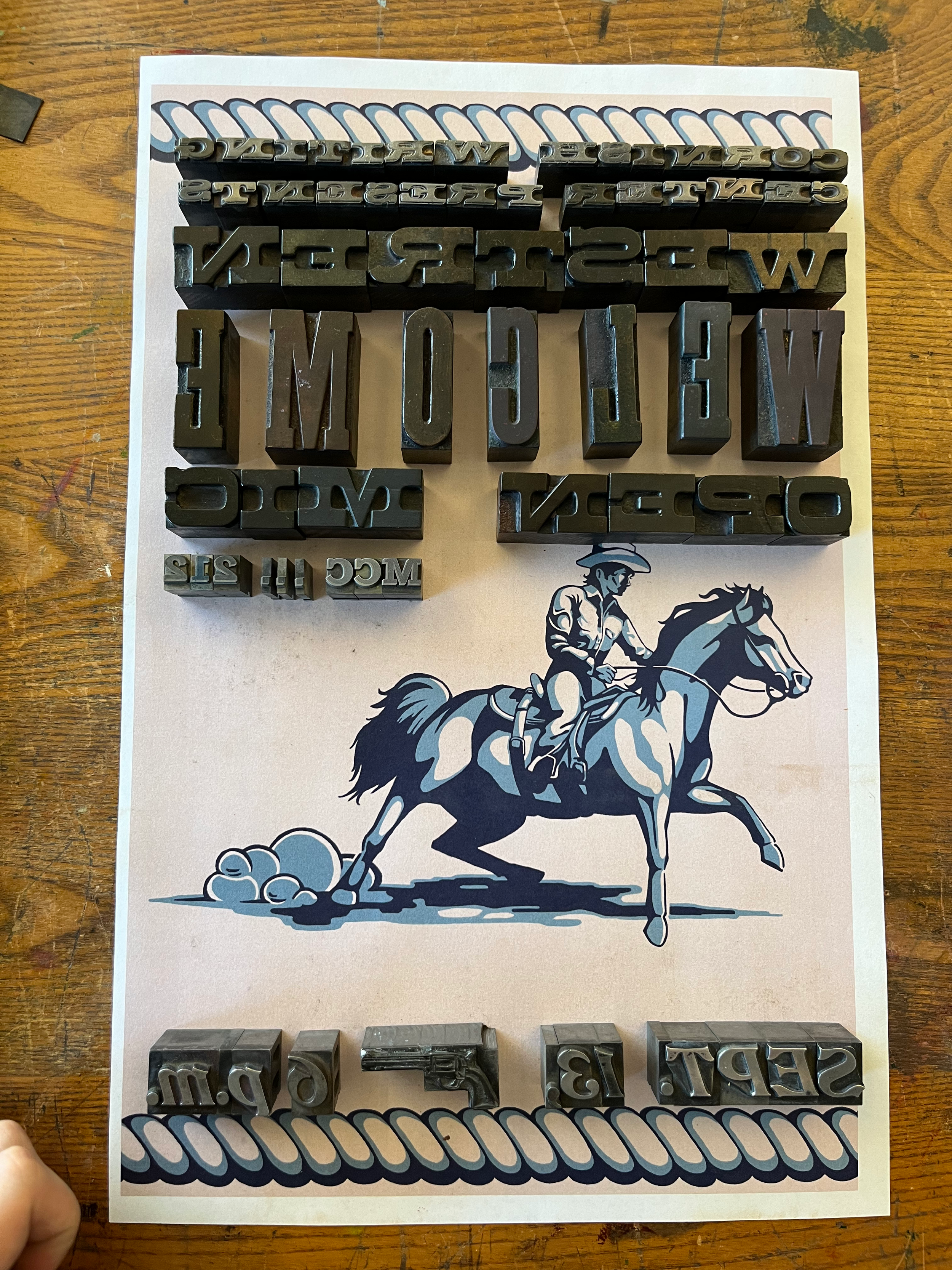 This poster is like a love letter to physical print media. The illustration is original, and I screen-printed it in two layers. The text is handset using a combination of lead and wood type, and printed on a letterpress. My client requested two colorways, but I used similar colors throughout both in order to have the posters feel like a matching set.